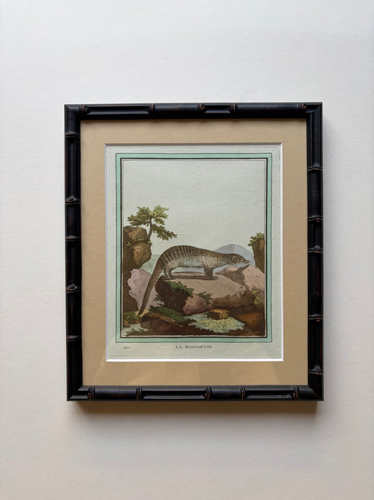Bamboo style framed antique animal engraving, 1770
