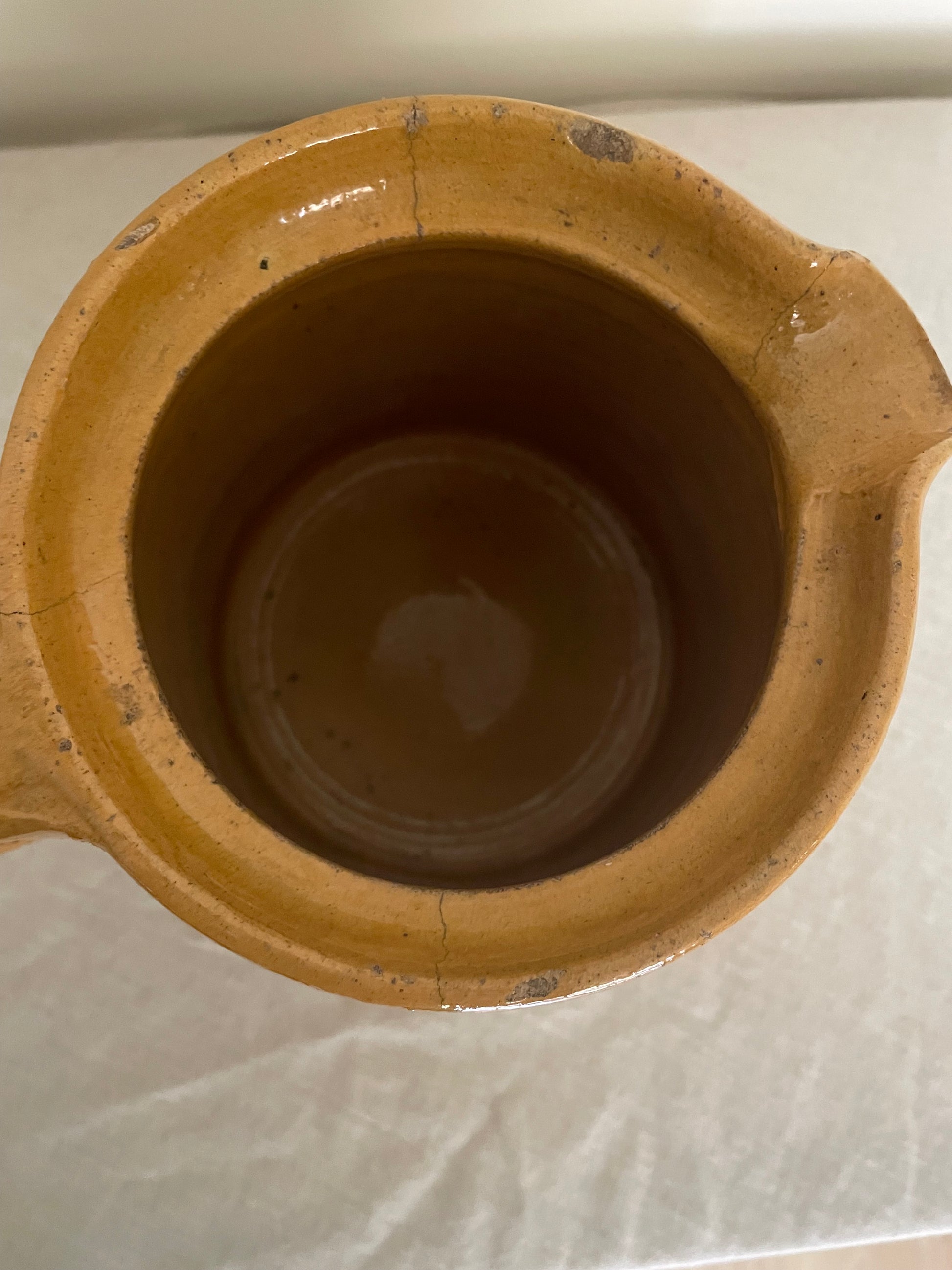 A beautiful vintage jug from France which exudes rustic charm in a mustard yellow colour.