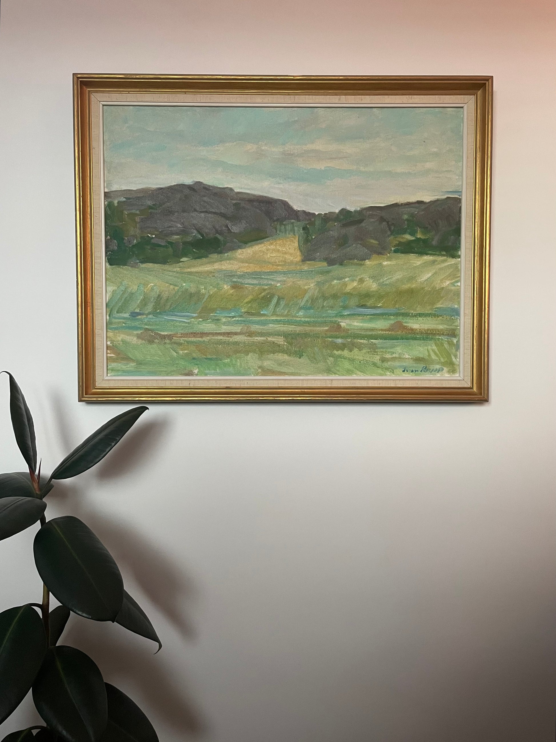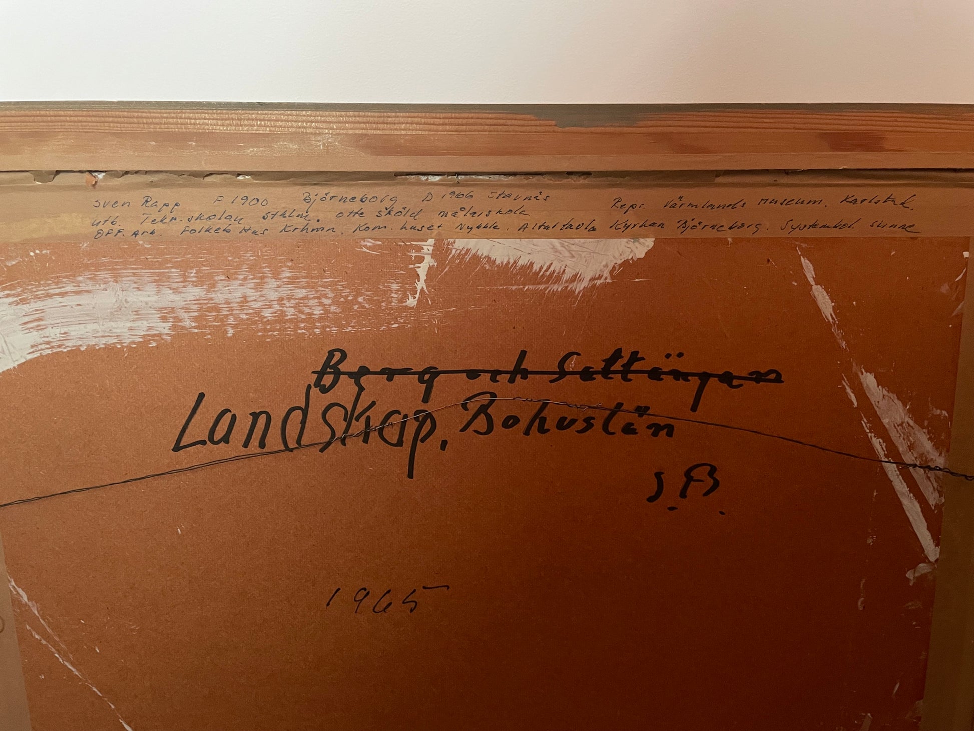 An original vintage oil painting on canvas board by Sven Rapp, painted in 1965 of Bohuslän, Sweden.