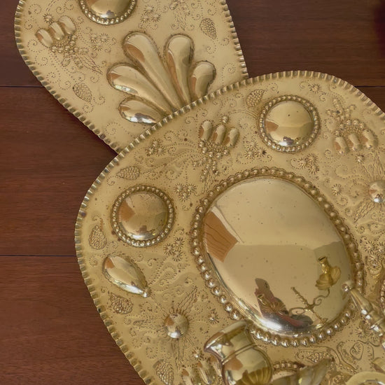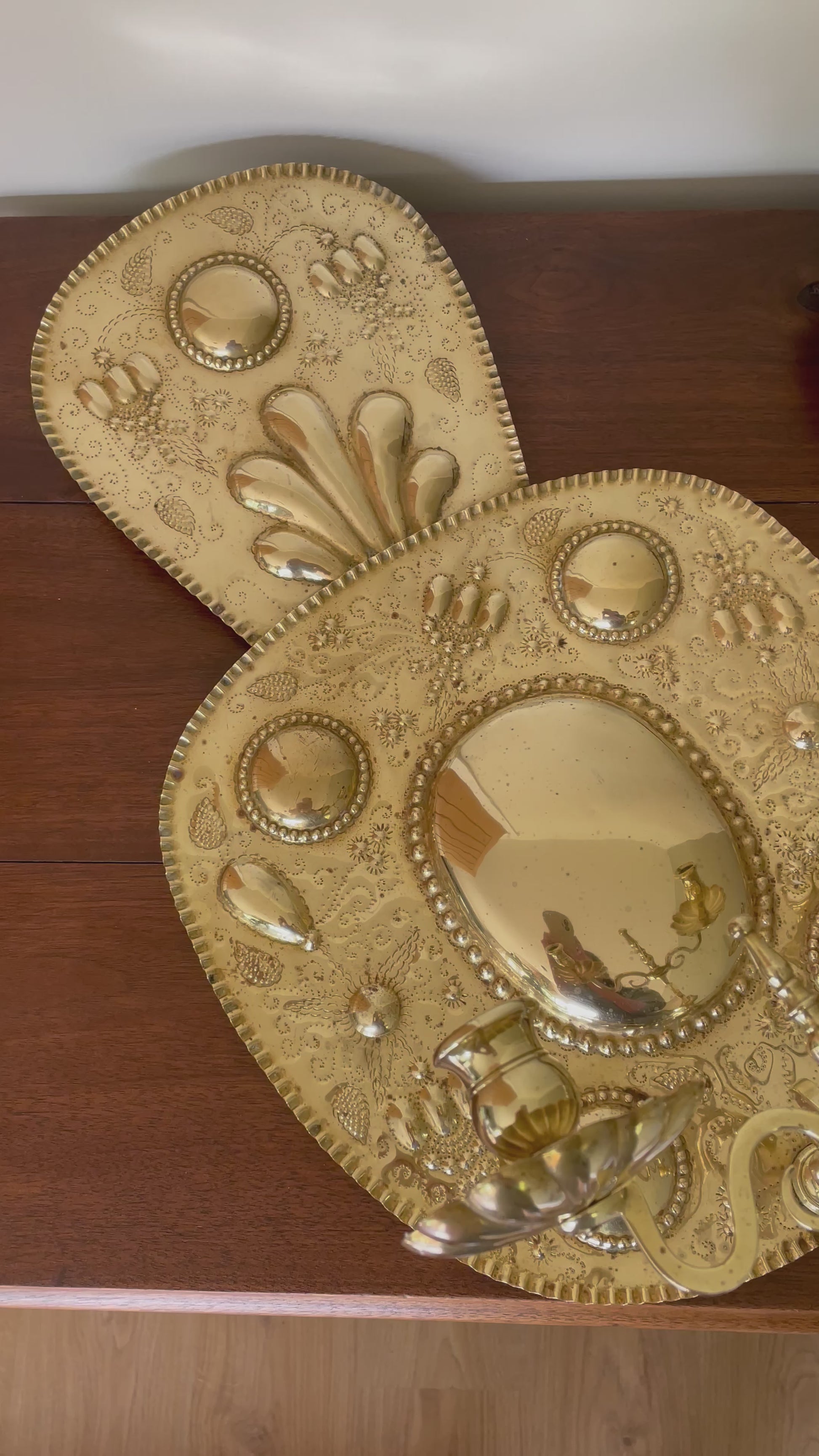 This pair of vintage brass wall sconces are a beautiful way to add impact to a wall space. These are large in size and so are perfect for filling up a large empty space on the wall.