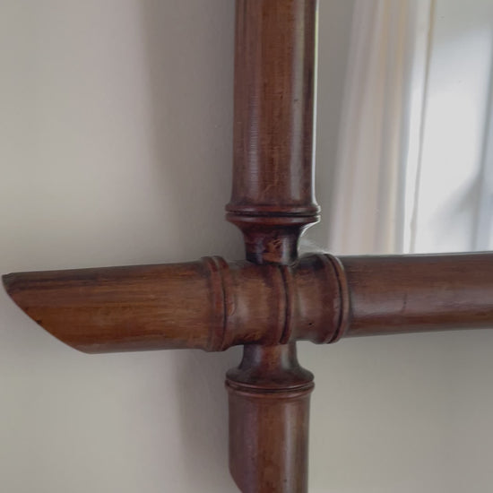 Vintage wooden faux bamboo French mirror - landscape orientation