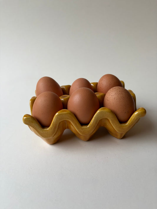 Vintage yellow mustard ceramic egg holder