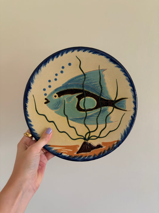 Blue fish vintage wall plate